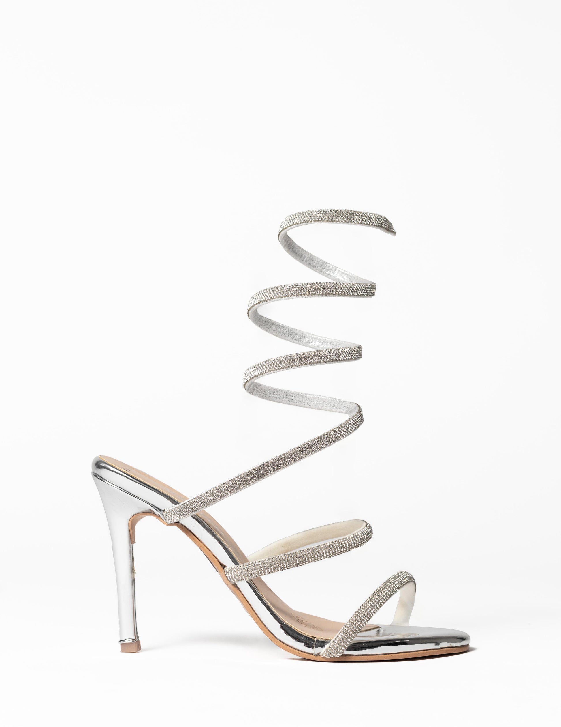 Cosmopolitan es un estilo diseñado para robar miradas, por su diseño sofisticado que recuerda los icónicos diseños de René Caovilla. Su acabado metalizado en tono plata y su diseño espiralado que envuelve el tobillo la convierten en una pieza elegante. Cosmopolitan se luce al máximo con vestidos midi o mini que dejen ver su silueta serpenteante. Combínala con accesorios metálicos para un look glamuroso o con prendas negras para un contraste impactante.